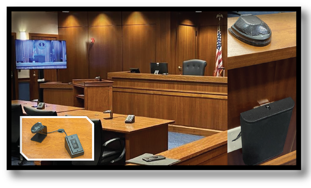 High-definition cameras capture every detail, while top-quality microphones eliminate background noise, ensuring that all voices are heard. Automatic video switching, triggered by microphones, captures a close-up of individuals when they speak in the courtroom, making it easy for remote participants to see who is speaking.